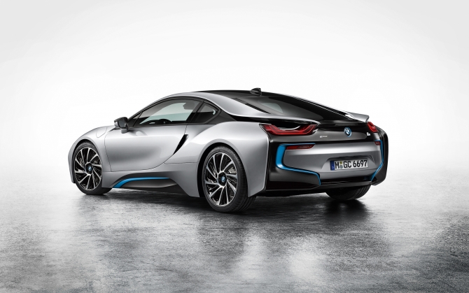 На нашем сайте вы можете скачать обои для рабочего стола BMW i8 вид сзади высокого качества.