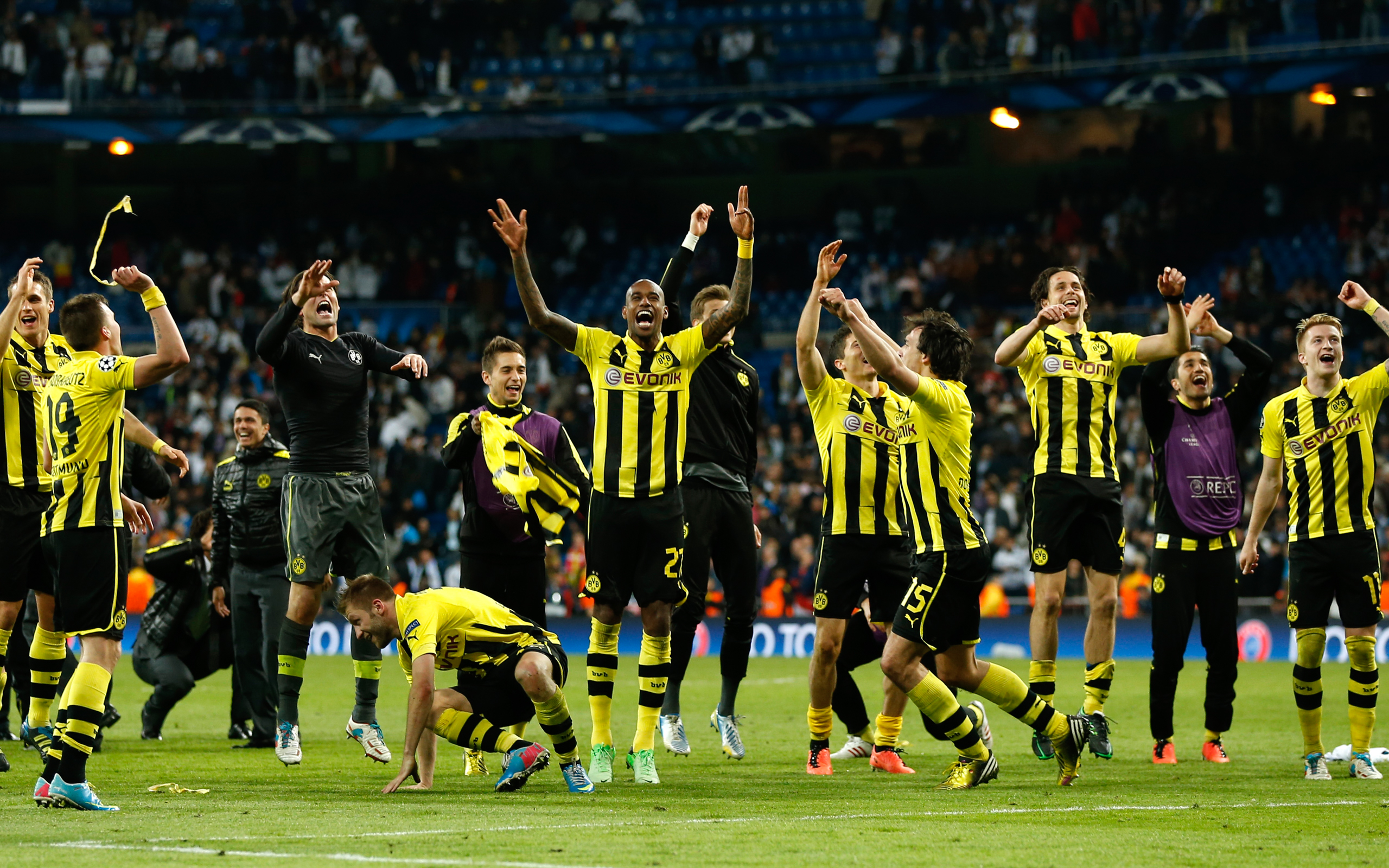 Вы можете скачать обои Боруссия празднует победу не только для стандартных и широкоформатных мониторов, но и для телефонов, планшетов и смартфонов на Android и iOS.