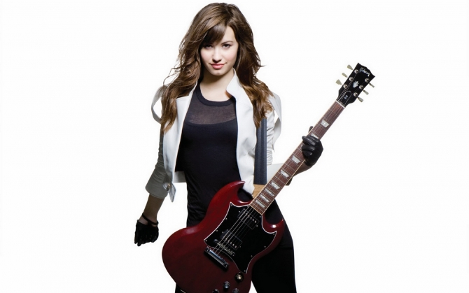 На нашем сайте вы можете скачать обои для рабочего стола Деми Ловато с гитарой высокого качества.