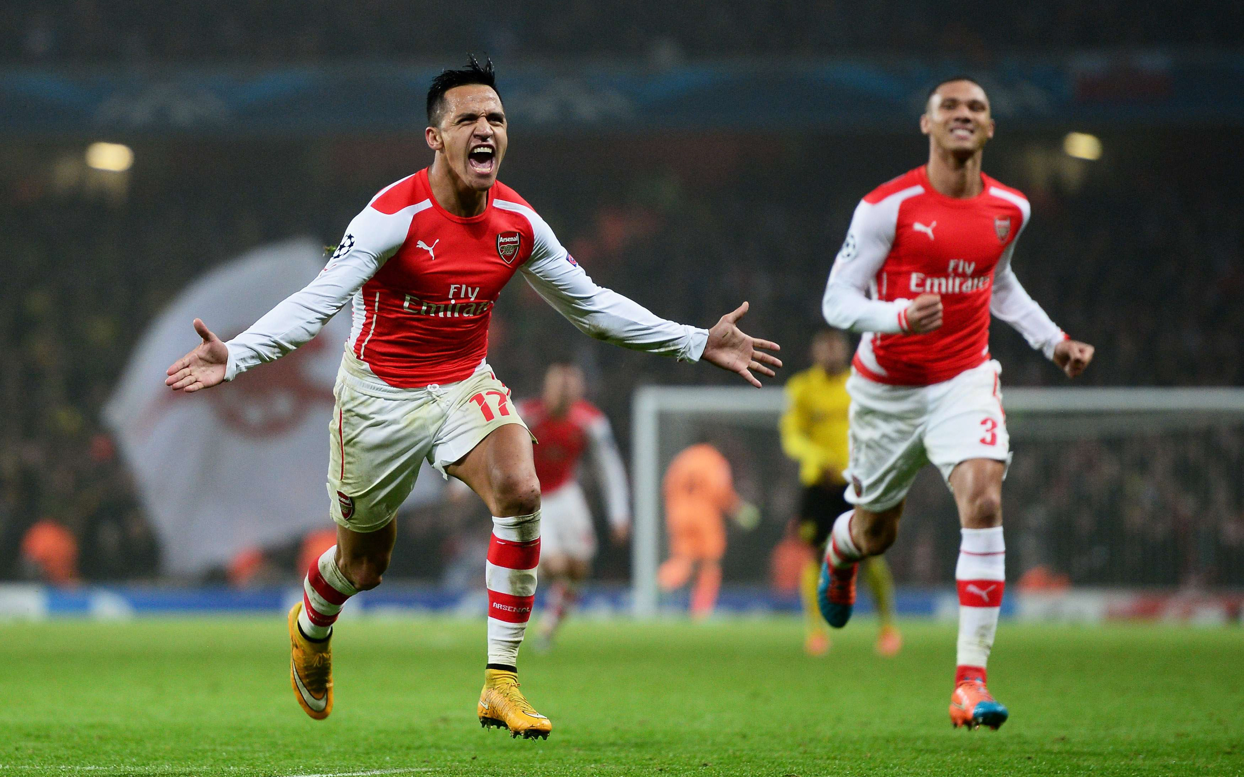 Вы можете скачать обои Алексис Санчес празднует гол не только для стандартных и широкоформатных мониторов, но и для телефонов, планшетов и смартфонов на Android и iOS.