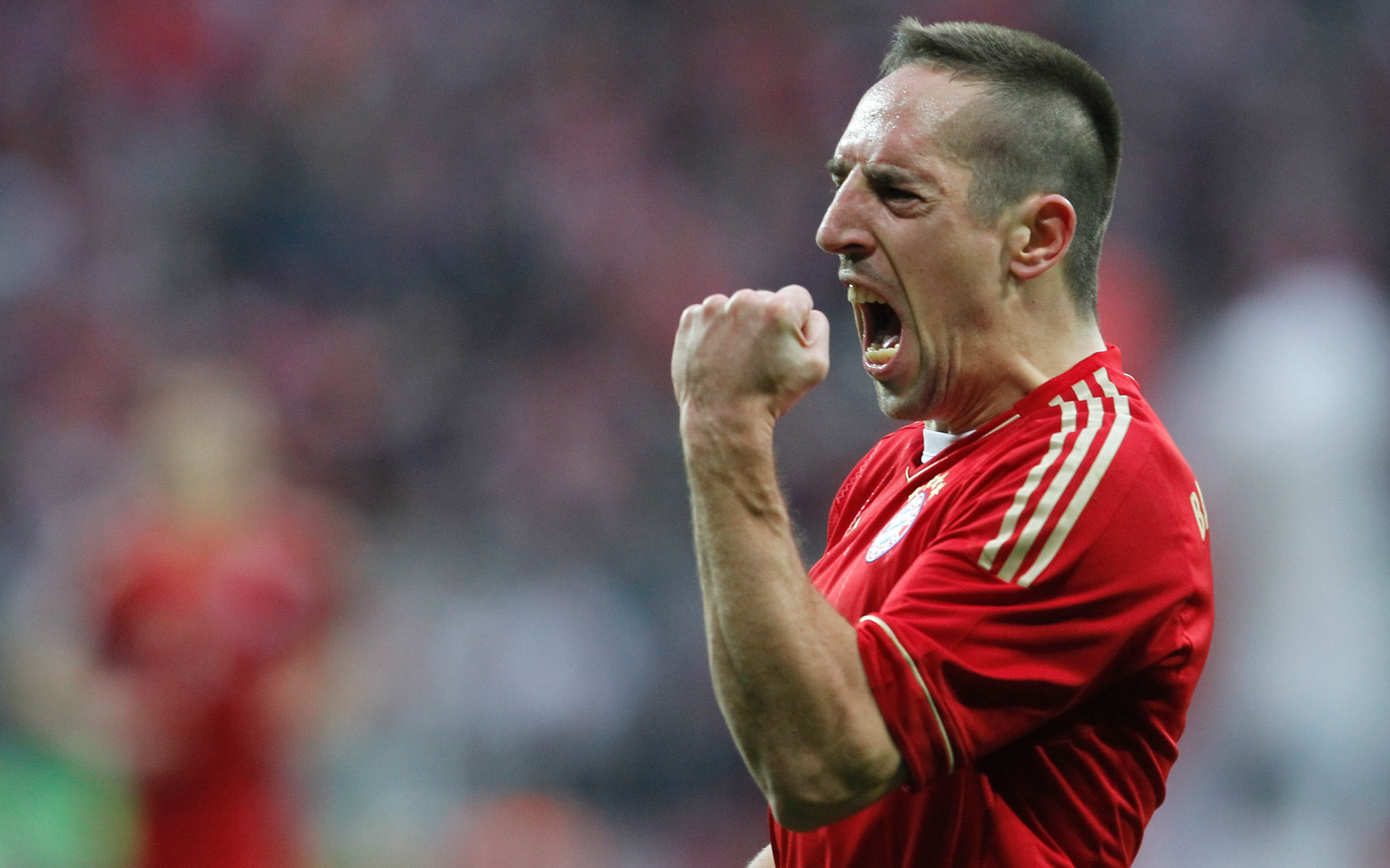 На нашем сайте вы можете скачать обои для рабочего стола Франк Рибери празднует забитый гол высокого качества.
