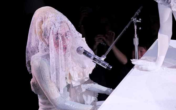 На нашем сайте вы можете скачать обои для рабочего стола Леди Гага за роялем высокого качества.