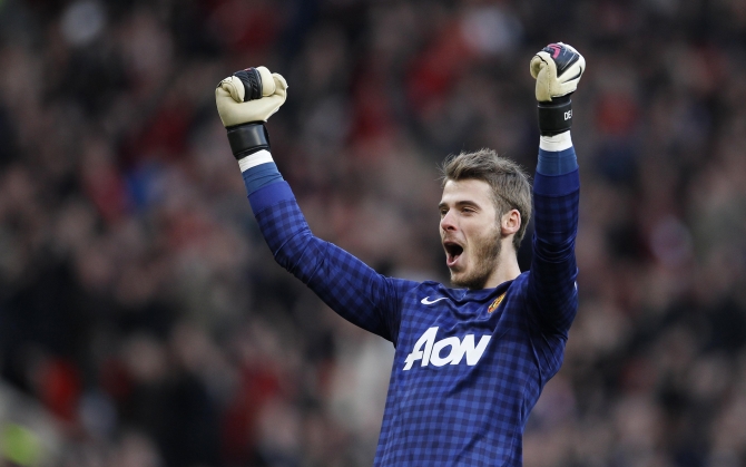 На нашем сайте вы можете скачать обои для рабочего стола Давид Де Хеа празднует победу высокого качества.