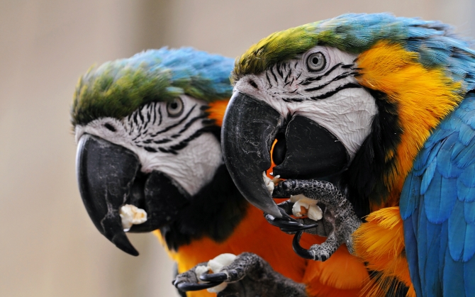 На нашем сайте вы можете скачать обои для рабочего стола Два попугая Ара высокого качества.