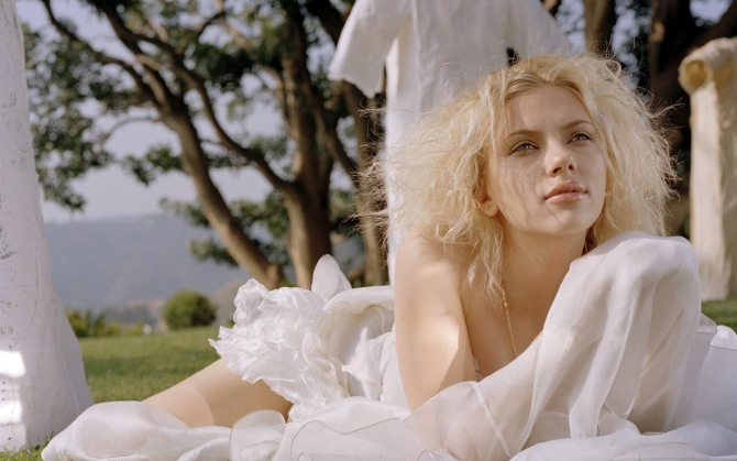 На нашем сайте вы можете скачать обои для рабочего стола Скарлетт Йоханссон в белом платье высокого качества.